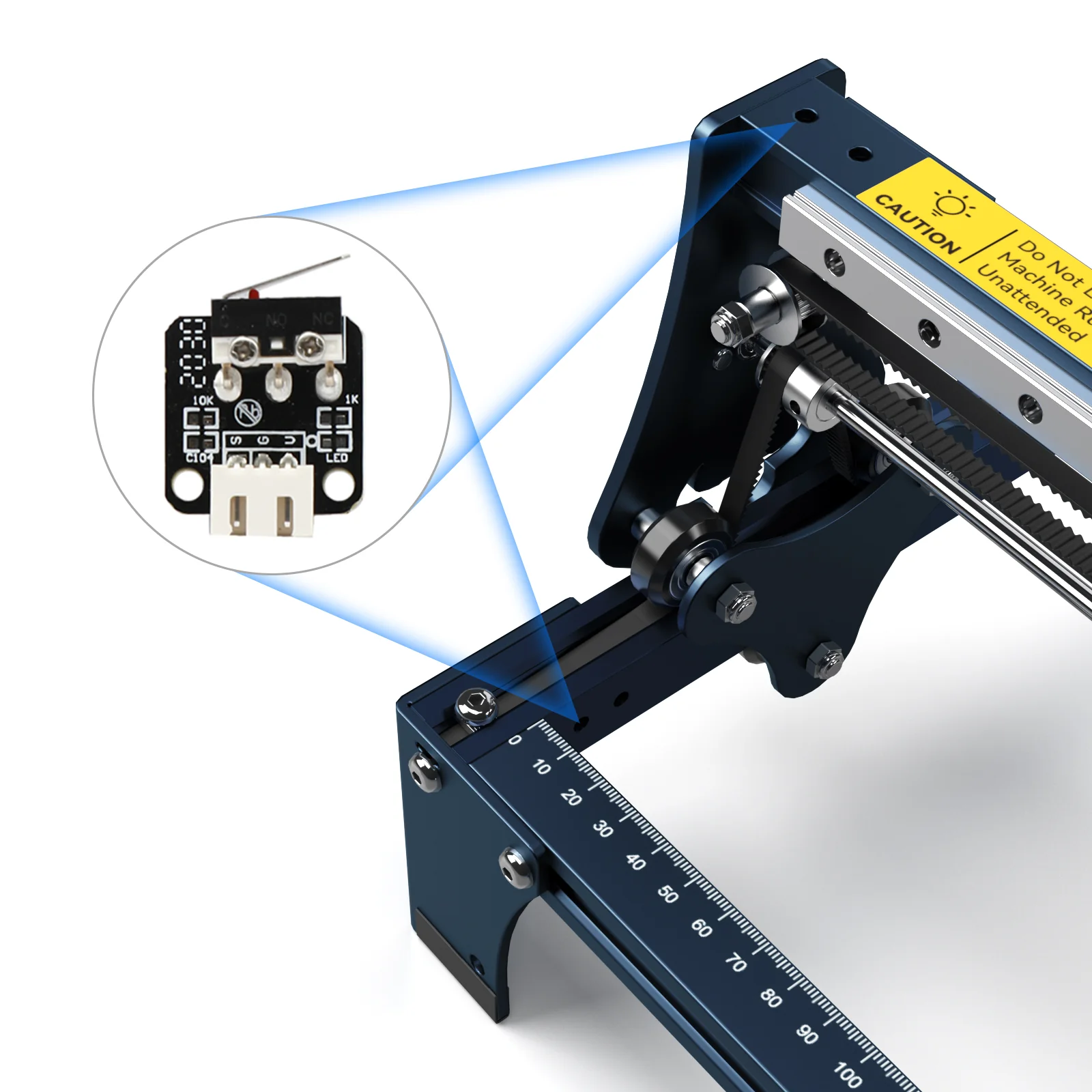 2. Agujeros reservados para finales de carrera: Los agujeros para interruptores de límite están reservados en el eje Y extendido de S30 (los agujeros de montaje para interruptores de límite también están reservados en el eje X de S30), para que pueda comprar accesorios baratos para interruptores de límite para actualizar el interruptor de límite o la función de localización láser.